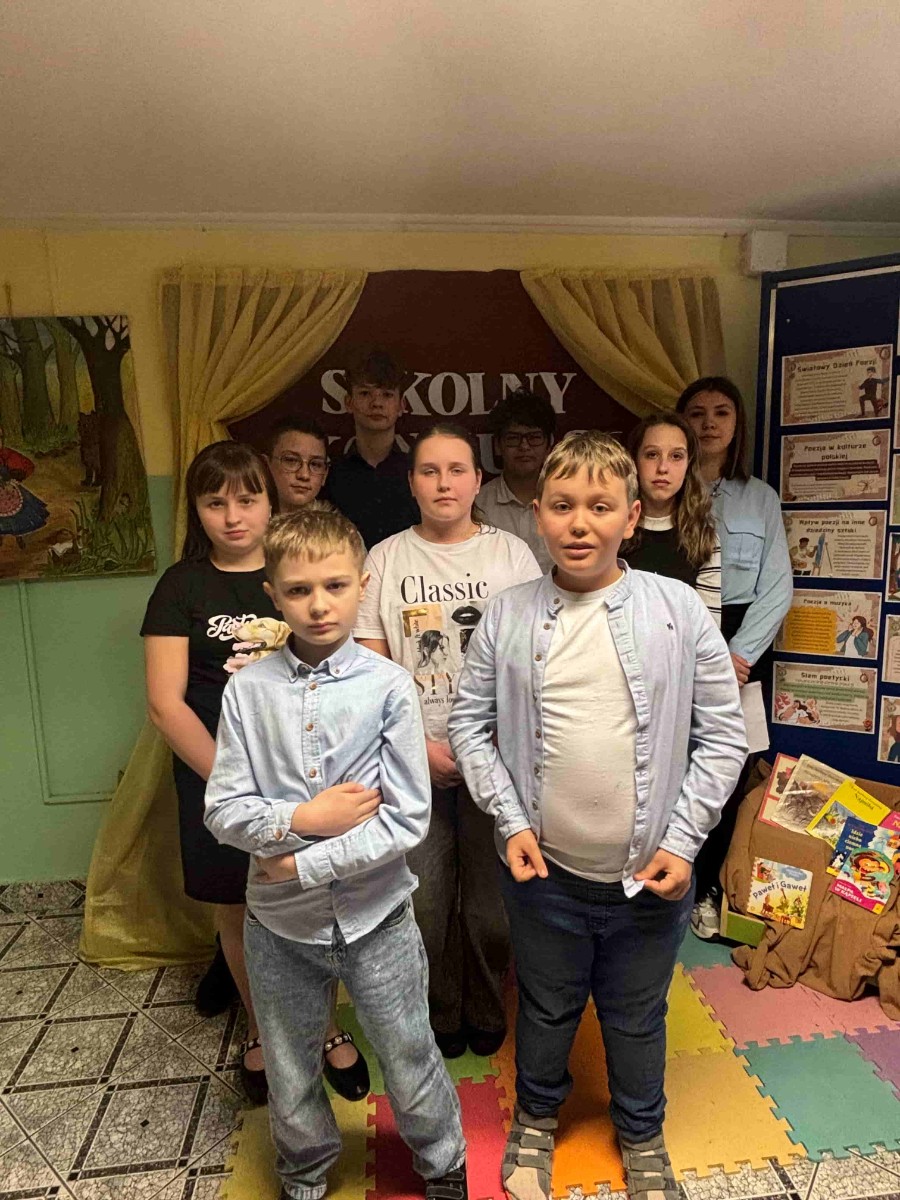 W dniu 25.03.2026 w bibliotece odbył się szkolny konkurs recytatorski wierszy Ewy Szelburg – Zarembiny i Aleksandra Fedry. Konkurs adresowany był do uczniów klas I-VIII, którzy chcieli sprawdzić swoje umiejętności recytatorskie.