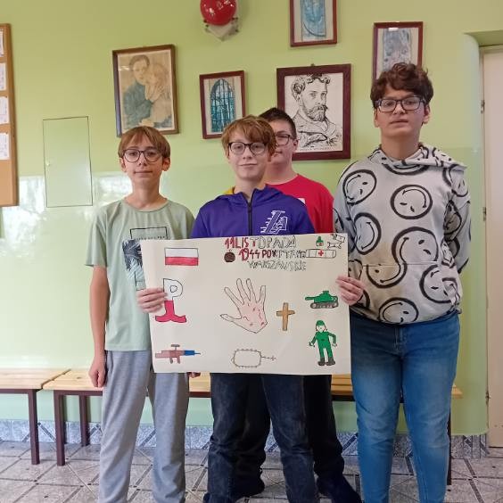 W październiku 2025 r. uczniowie kl. IV-VIII uczestniczyli w projekcie BohaterON w Twojej Szkole. Celem akcji było podniesienie poziomu wiedzy i świadomości uczniów na temat Powstania Warszawskiego, którego 81. rocznicę obchodzimy w tym roku. Na lekcjach języka polskiego, historii i godziny wychowawczej uczniowie słuchali wspomnień oraz słuchowisk. Zastanawiali się, kim jest bohater, jakie cechy powinien posiadać i czy warto nim być. Przeprowadziliśmy debatę na temat roli kobiet w czasie Powstania Warszawskiego, a także niebezpieczeństw, jakie im zagrażały.