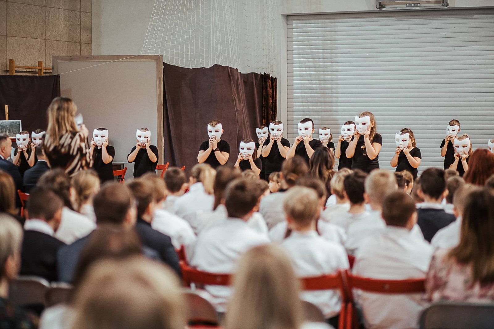 W czasie montażu słowno-muzycznego można było zobaczyć również taniec w maskach w wykonaniu szkolnego zespołu Promyczki.